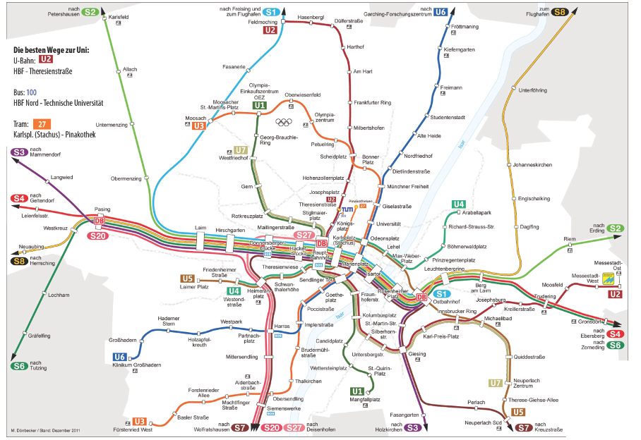 Wir empfehlen einen Besuch auf www.bahn.de. In München kommt ihr am Hauptbahnhof an, wo wir euch dann abholen werden und gemeinsam mit dem Gepäck per U-Bahn zur Uni fahren. Bitte gebt uns rechtzeitig Bescheid, wann ihr am Hauptbahnhof ankommen werdet, damit unser Empfangskomitee euch erwarten kann.
